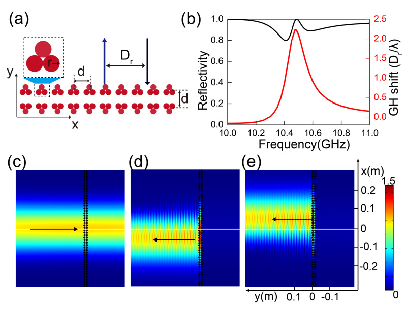 Goos–H?nchen位移在光學(xué)傳感和探測(cè)、光開(kāi)關(guān)、分束器等領(lǐng)域具有廣泛的應(yīng)用。該研究利用同時(shí)打破時(shí)間反演對(duì)稱、空間反演對(duì)稱和鏡像對(duì)稱的磁鏈內(nèi)漏波模耦合產(chǎn)生Fano共振,第一次在垂直入射下實(shí)現(xiàn)了基于非互易體模的反射波Goos–H?nchen位移。該研究為在垂直入射下實(shí)現(xiàn)反射波Goos–H?nchen位移提供一種新的途徑,在構(gòu)建新型光學(xué)設(shè)備,如單向耦合器、光隔離器、光開(kāi)關(guān)等方面具有重要的潛在應(yīng)用。