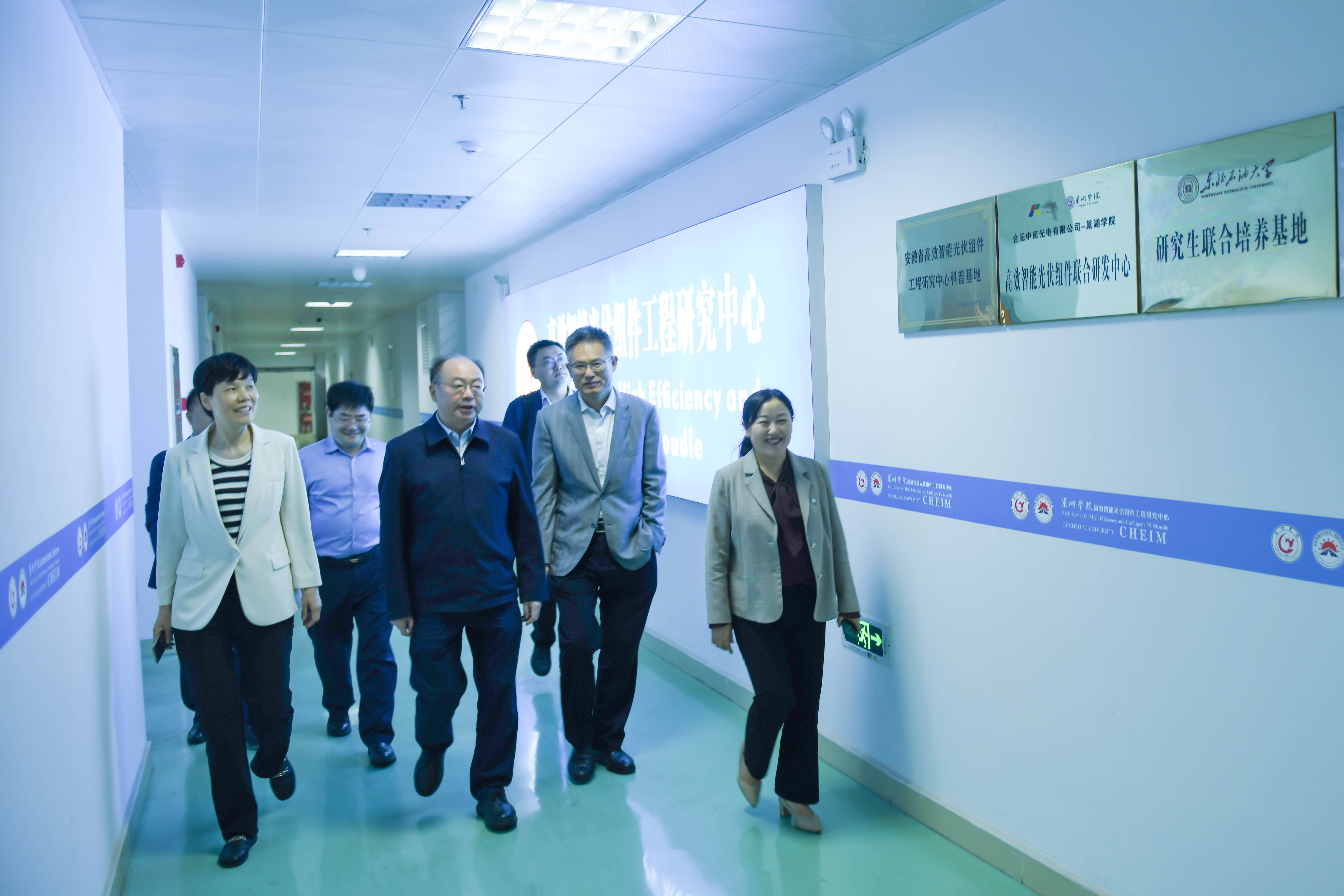 錢桂侖先后實地考察了安徽省高效智能光伏組件工程研究中心(籌)、大學生就業指導中心、第二課堂教育成果展以及品味園第一學生食堂,隨后召開座談會聽取巢湖學院工作匯報,就調研主題詳細了解情況。