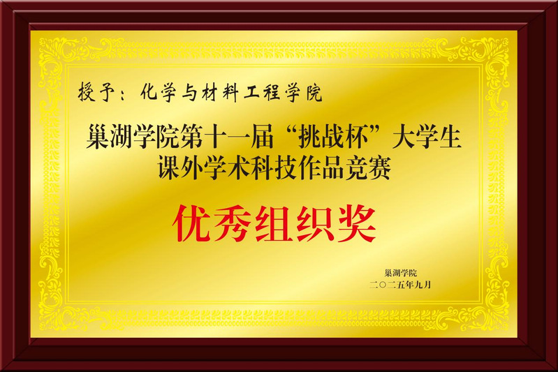 近日,學校公布了第十一屆“挑戰杯”大學生課外學術科技作品競賽優秀組織獎獲獎名單,化學與材料工程學院憑借出色的組織工作脫穎而出,榮獲優秀組織獎。