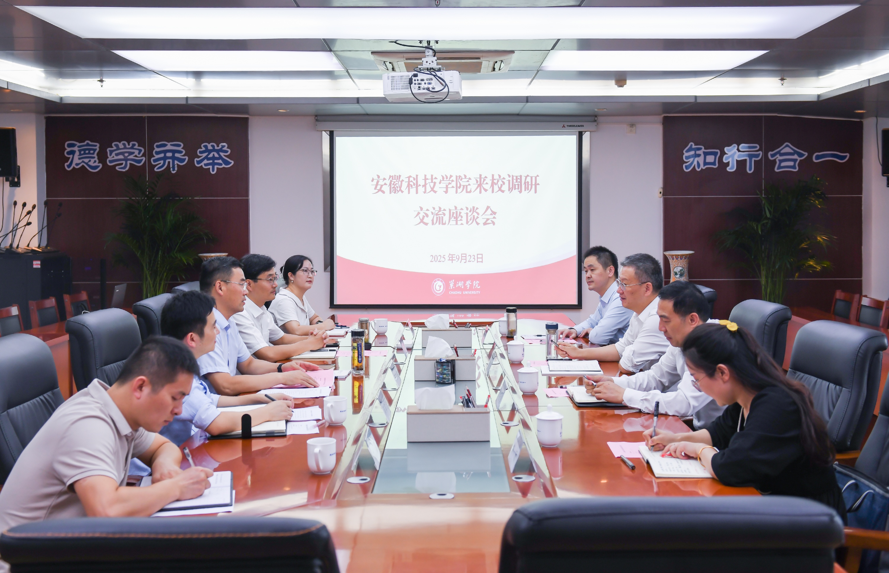 曹付忠對學校的熱情接待表示感謝,對近年來學校發展取得的成績表示祝賀,并介紹了安徽科技學院的基本情況和此次調研的主要內容。他表示,希望以此次調研為契機,進一步加強雙方的溝通交流、深化合作,強化優勢互助,在教育教學和人才培養等領域形成合力。