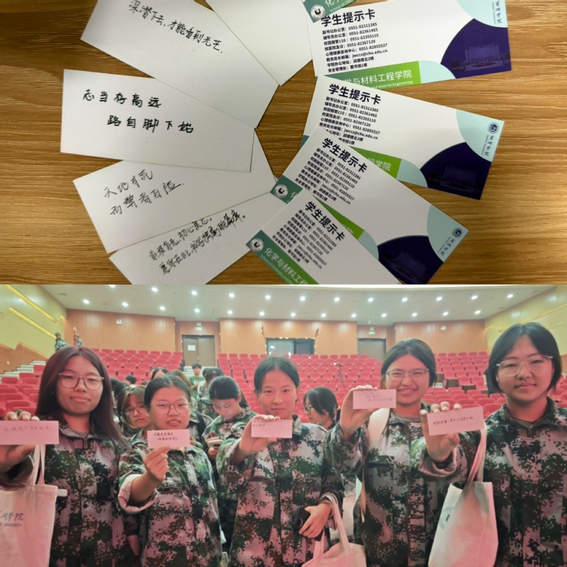 學院還精心準備了“學長學姐寄語”,學院團學骨干將一張張承載著學長學姐親手撰寫的祝福卡片送到每一位新同學手中。這些暖心的寄語,字里行間充滿著來自化材學院大家庭的溫情與關懷,是學院優良學風和正能量“傳幫帶”傳統的生動體現,讓新生們感受到了來自“化材人”的溫暖與期許。