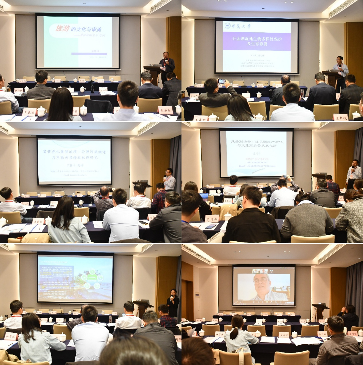 主旨報告部分由朱明教授主持,安徽大學陳心勝研究員、黃濤教授、安徽省旅游學會童地軸教授、合肥大學王乃舉教授、安徽省巢湖管理局山水辦項目負責人朱廣平、葡萄牙萊里亞理工大學的Prof.FranciscoDias教授。分別作了《升金湖濕地生物多樣性保護與生態修復》《旅游的文化審美——兼談旅游生態意識》《富營養化巢湖治理:外源污染溯源與內源污染釋放機理研究》《風景到場景:環巢湖遺產活化與文旅高質量發展之路》《整體謀劃系統實施推進巢湖流域山水林田湖草一體化保護和修復》《Monitoringtourismimpactsasafirststepfortourismsustainabilityinlakebasins》等6場主旨報告。