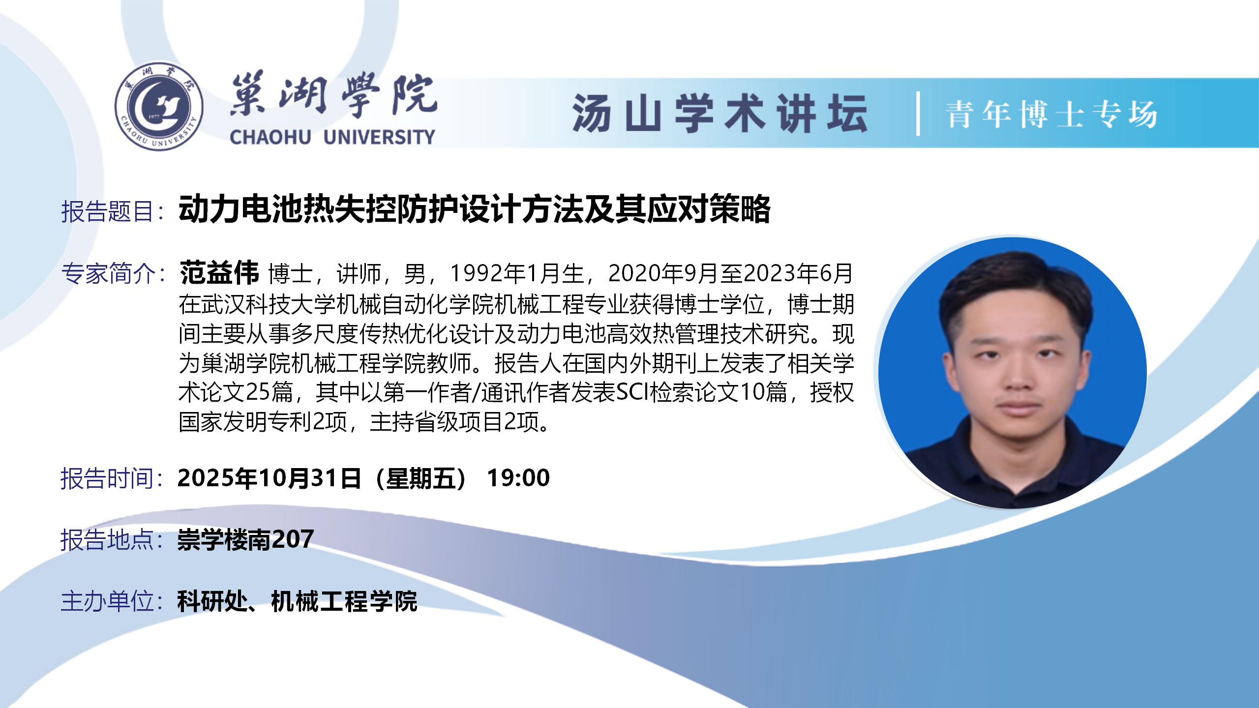 湯山學術講壇青年博士專場第27講:(10月31日:機械工程學院范益偉博士講座)