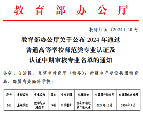 數學與大數據學院前身是巢湖師范專科學校數學系,始建于1978年,是學校設立最早的系部之一。現有數學與應用數學、應用統計學、大數據管理與應用3個本科專業,其中數學與應用數學為省級一流專業建設點,自2023年起納入安徽省本科第一批次招生;應用統計學為校企合作共建專業。自1978年至今,40余年的歲月沉淀為學院專業人才培養奠定了深厚的文化底蘊。現有專任教師60人,其中教授9人、博士20人、安徽省模范教師1人、安徽省教壇新秀6人、安徽省線上教學名師1人、安徽省優秀教師1人、安徽省優秀指導教師10人,碩士生導師7人。高質量師資隊伍為人才的培養提供堅實保障。