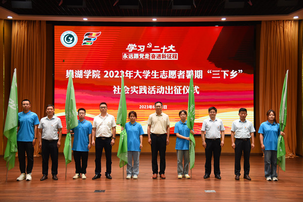 為深入學習宣傳貫徹習近平新時代中國特色社會主義思想和黨的二十大精神,認真落實團十九大部署,堅持在火熱實踐中培育有理想、敢擔當、能吃苦、肯奮斗的新時代好青年,6月28日下午,巢湖學院2023年大學生志愿者暑期“三下鄉”社會實踐活動出征儀式在求實樓報告廳舉行。校黨委書記周峰,黨委委員、黨委組織部部長柯應根,校辦公室、黨委宣傳部、黨委保衛工作部、教務處等相關職能部門負責人和各學院黨政領導出席儀式,各學院團委書記、重點團隊指導教師和成員代表參加儀式。儀式由校團委書記王倩主持。