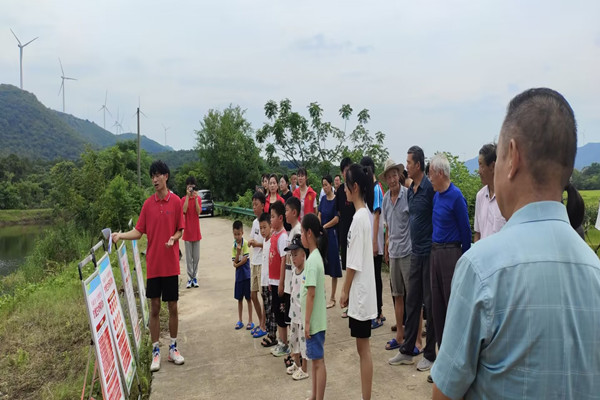 為加深小朋友們的印象,實(shí)踐團(tuán)因地制宜,通過啟發(fā)引導(dǎo)和現(xiàn)場(chǎng)模擬使得小朋友們對(duì)溺水自救知識(shí)有了更生動(dòng)的了解。講解員:“有沒有哪位小朋友知道,當(dāng)人落水時(shí)的第一反應(yīng)動(dòng)作是什么?”小朋友A:“拼命地掙扎,非常地慌張,害怕嗆水。”講解員:“對(duì)!但是我們?nèi)绻@樣能不能讓自己獲救?”小朋友們:“好像不能。”講解員:“沒錯(cuò),拼命掙扎,上下?lián)潋v,這種姿勢(shì)只會(huì)消耗大量體力,還有繼續(xù)下沉的危險(xiǎn)。”說著實(shí)操員王旭跳入水塘,現(xiàn)場(chǎng)演示落水后高舉雙手等錯(cuò)誤的自救方式,小朋友們發(fā)現(xiàn)這樣做反而會(huì)使身體沉得更快。“那我們?cè)撛趺崔k啊?”岸邊宣講員金柱解釋道:“我們可以運(yùn)用仰漂的方法施行自救,這樣需要的力氣小,可以節(jié)省體力。小朋友們仔細(xì)看水塘里哥哥做的正確溺水自救方法。大家要身體往后仰,把嘴巴和鼻子露出水面,慢慢地吸氣呼氣……”