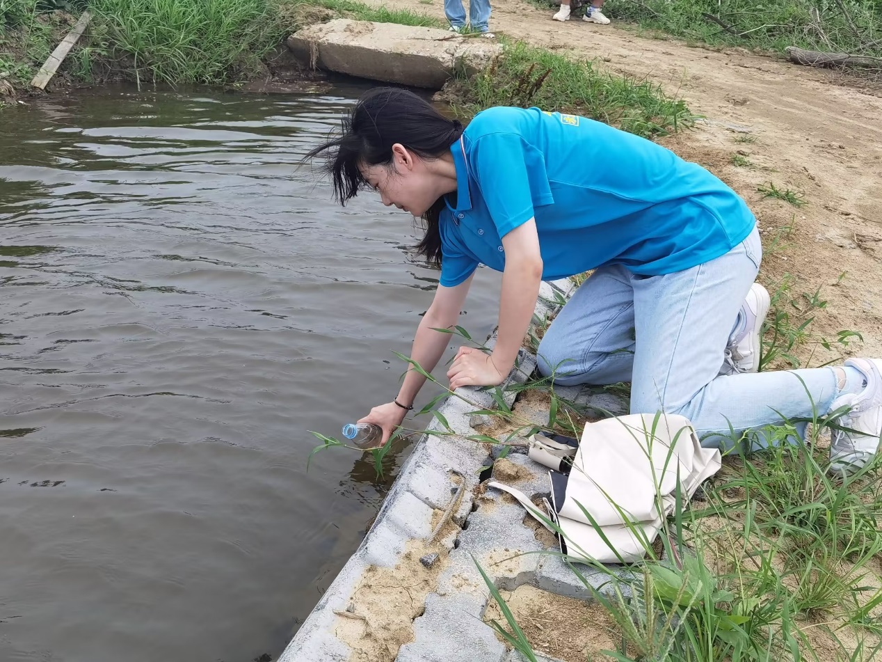 此外,夏鄉稻麥小隊赴巢湖槐林鎮開展水質檢測活動,考察當地的水質環境,政府人員帶領團隊成員前往濕地,成員們在槐林鎮靠近田地的多地水域的不同位置進行取水取樣,拍照記錄所取水樣的位置然后貼標簽分類。本次所取水樣將由夏鄉稻麥小隊的人員帶回學校根據相關要求進行嚴格檢測,調研槐林鎮藍藻季節性爆發問題。在取樣的過程中團隊成員也與政府相關負責人及當地農民進行交流,了解附近水域的現狀以及附近湖水的質量對水稻等農作物的影響,在交流融匯后,成員對于水稻的生長環境著一定了解,做到在確保谷物質量、品質的同時也要保護消費人群。做到維護社會和個人的利益。