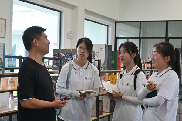 在郎溪縣,實踐團先后來到陽力家庭農(nóng)廠、蘇皖合作示范區(qū)展覽館、青狐農(nóng)村電商直播基地和康龍農(nóng)業(yè)開發(fā)有限公司進行實踐走訪調(diào)研。在陽力家庭農(nóng)廠,實踐團員們深刻感受到科技興農(nóng)理念和生態(tài)環(huán)保概念給農(nóng)業(yè)發(fā)展帶來的巨大變化,農(nóng)業(yè)發(fā)展由增產(chǎn)導(dǎo)向轉(zhuǎn)向提質(zhì)的現(xiàn)代化農(nóng)業(yè)導(dǎo)向。在蘇皖合作示范區(qū)展覽館中,實踐隊員全面了解郎溪縣概況與發(fā)展優(yōu)勢、產(chǎn)業(yè)布局與營商環(huán)境,且隨著鄉(xiāng)村振興以及跨省合作政策的出臺,郎溪縣日益成為外地企業(yè)競相投資的區(qū)域。在青狐農(nóng)村電商直播基地,實踐隊員們深刻感受到互聯(lián)網(wǎng)給農(nóng)業(yè)帶來的巨大變化,新鮮的農(nóng)產(chǎn)品趁著互聯(lián)網(wǎng)平臺的便利,遠銷各地,農(nóng)民收入較以前有了巨大提升。在康龍農(nóng)業(yè)開發(fā)有限公司,實踐隊員走進公司生產(chǎn)車間,參觀原材料加工的過程以及亞臨界低溫萃取工藝,在工作人員對科研產(chǎn)品的介紹下,隊員也深刻領(lǐng)悟到科技對企業(yè)發(fā)展以及鄉(xiāng)村振興的重要性。