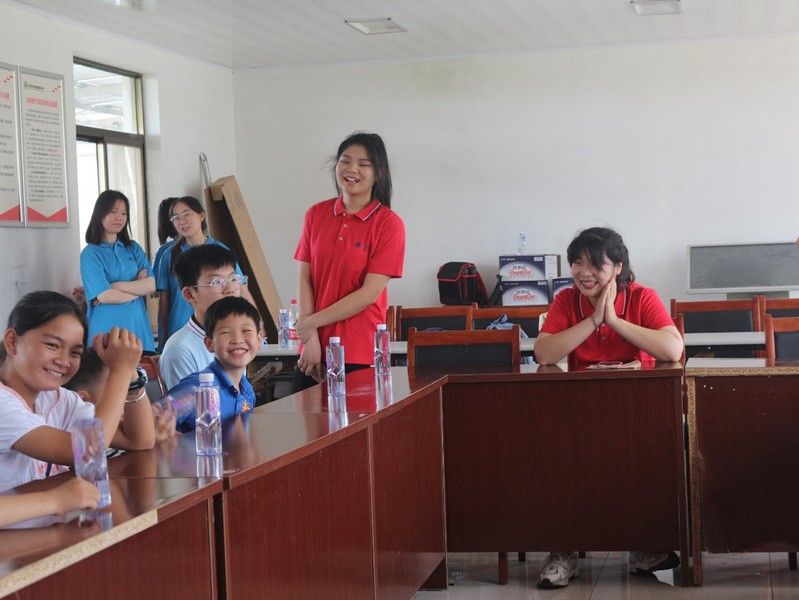 7月4日上午,實踐團來到實地普通話推廣重要一站——無為市劉渡鎮農林村。農林村村中總人口3000余人,常住人口1000余人,村內居民主要以老人以及留守兒童為主。活動開展前,村支書和駐村工作隊談到,兒童是農林村的未來,提高幼兒普通話水平是創建美好未來的首要一步,因此,普通話推廣工作極其重要。隨后,團隊隊員通過開展“有趣的卡片游戲”“中國故事會”等游戲活動寓教于樂,激發孩子們對普通話學習的興趣,孩子們沉浸游戲中,歡聲笑語,氣氛熱烈。在游戲過程中,團隊成員不時糾正孩子們的發音,解決孩子們在說普通話時遇到的問題,引導孩子們正確的講普通話。游戲結束后,孩子們通過自己的努力均獲得了小禮物,提高了說普通話的意識。