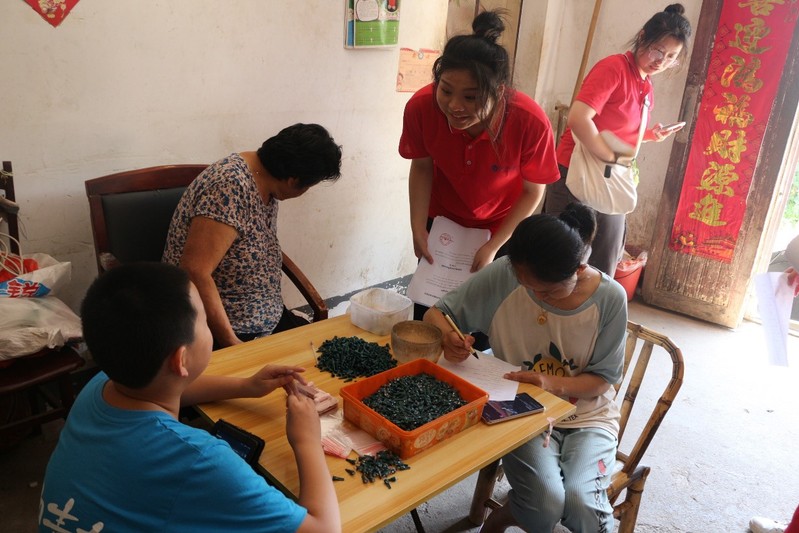 7月4日下午,實踐團在無為市劉渡鎮農林村內展開調研。成員們將調查問卷發放給村干部們,他們均對團隊的推普進鄉活動表示大力支持。在交流中,實踐團成員了解到農林村村民主要以務農為生,大多半輩子都勞作在田間,加之受方言影響,加大推普下鄉力度需久久為功。此外,村兩委和駐村工作隊扎根基層實干奉獻的堅定信念和推普的決心意志。隨后,實踐團深入村民家中進行走訪調研,以調查問卷和訪談交流的形式來了解當地普通話使用情況,對于村中不識字老人以口述形式進行訪問。在走訪過程中,隊員們切身感受到當地普通話普及情況,推普這條路是長遠、艱辛且充滿現實意義。