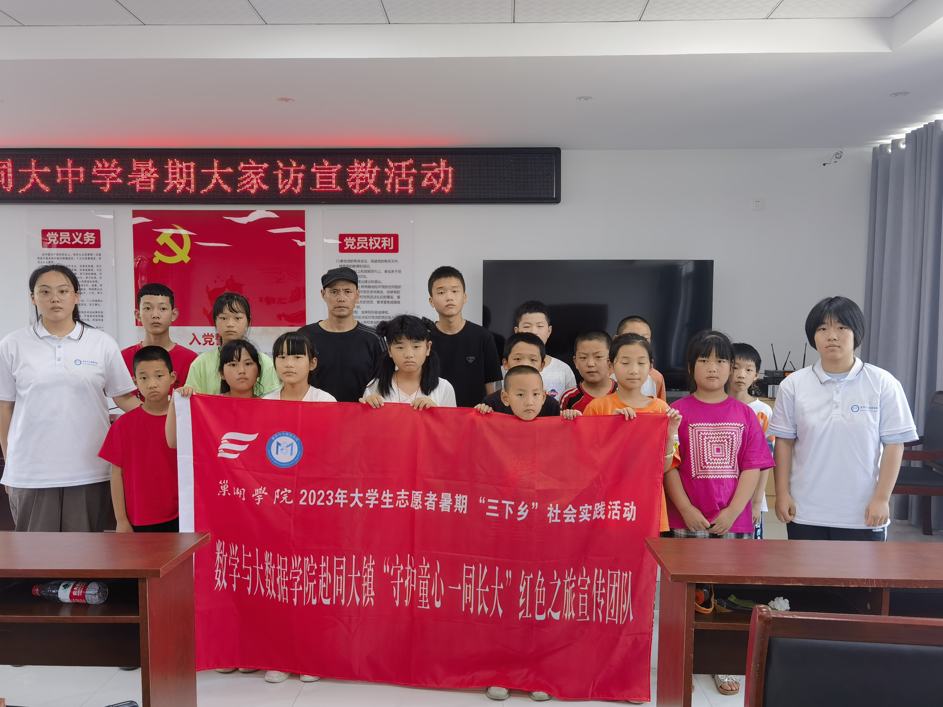 為了給農村中小學生提供更加溫馨、更為營養、更具吸引力的暑期服務,助力文明鄉村常態長效建設,2023年7月10日,巢湖學院同大鎮“守護童心一同長大”社會實踐活動團隊在指導老師的帶領下,深入廬江縣同大鎮二龍村、馬河村等地開展為期兩周的暑托班社會實踐活動,為當地中小學生精心調制了德、智、體、美、勞“五味”俱全的暑期文化“大餐”。