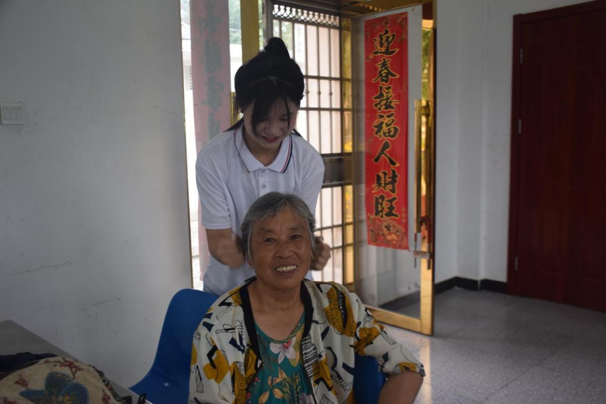 一位個子雖小但精神頗佳的74歲的奶奶熱情地注視著團隊的成員,眼泛星光,拉著團隊中的一個女生,臉上漾著笑容。她告訴團隊成員,她的孫子是在馬鞍山附近就業的青年,正值青壯年,在工作和學業上格外出眾,與此同時,在興趣愛好方面也格外投入,在舞蹈比賽中帶領團隊獲得了好成績。奶奶在講述中格外自豪,講著孫子與團隊成員年歲相近,又帶著對孫兒的想念,反復詢問團隊成員,拉著團隊成員的手不舍地握著,像是可以將對孫兒的思念傾注其中。