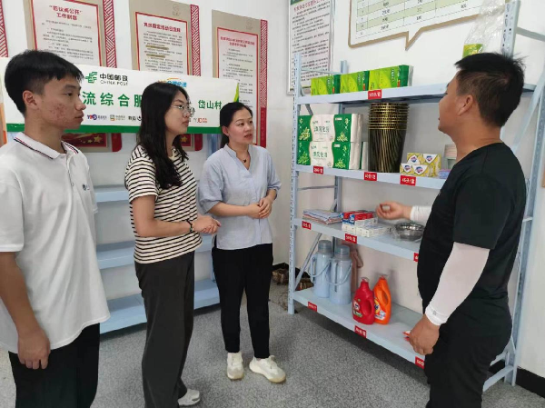指導老師及隊員在銀屏鎮岱山村志愿服務中心了解積分兌換制